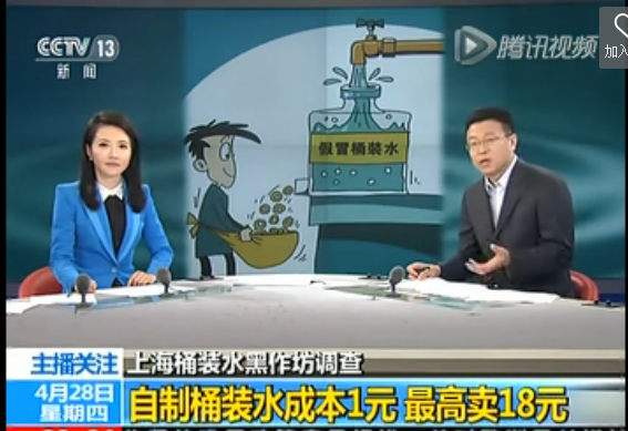 立夏了,天氣越來越熱,桶裝水的銷量也在逐漸增加,然而,一些不良商販卻打起了桶裝水制假的主意。據(jù)央視報道,近日上海警方查獲了多家桶裝水黑作坊,他們通過私自購買簡易凈水過濾設(shè)備,采用偷梁換柱的方法,貼上一些名牌商標(biāo),使得本來成本只有1元的不合格桶裝水,搖身變?yōu)?8元的高端桶裝水。