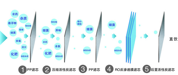RO凈水機(jī)濾芯作用: