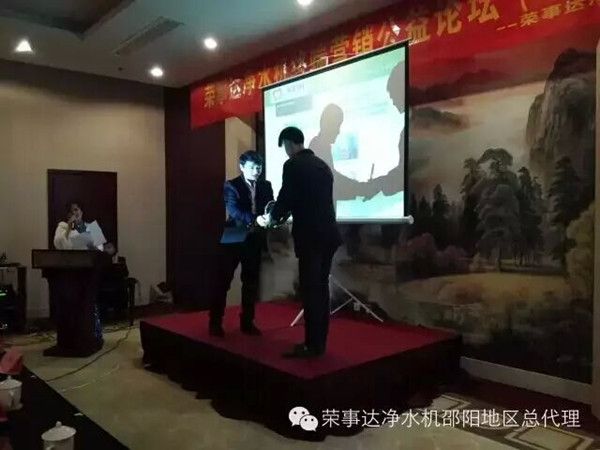 特殊教育學校負責人現(xiàn)場接受了捐贈,同時,在榮事達凈水機邵陽所有經(jīng)銷商的見證下,榮事達西南西北地區(qū)總監(jiān)孫長華為邵陽管理中心頒發(fā)了“樂享凈水 愛心代理商”的獎杯。